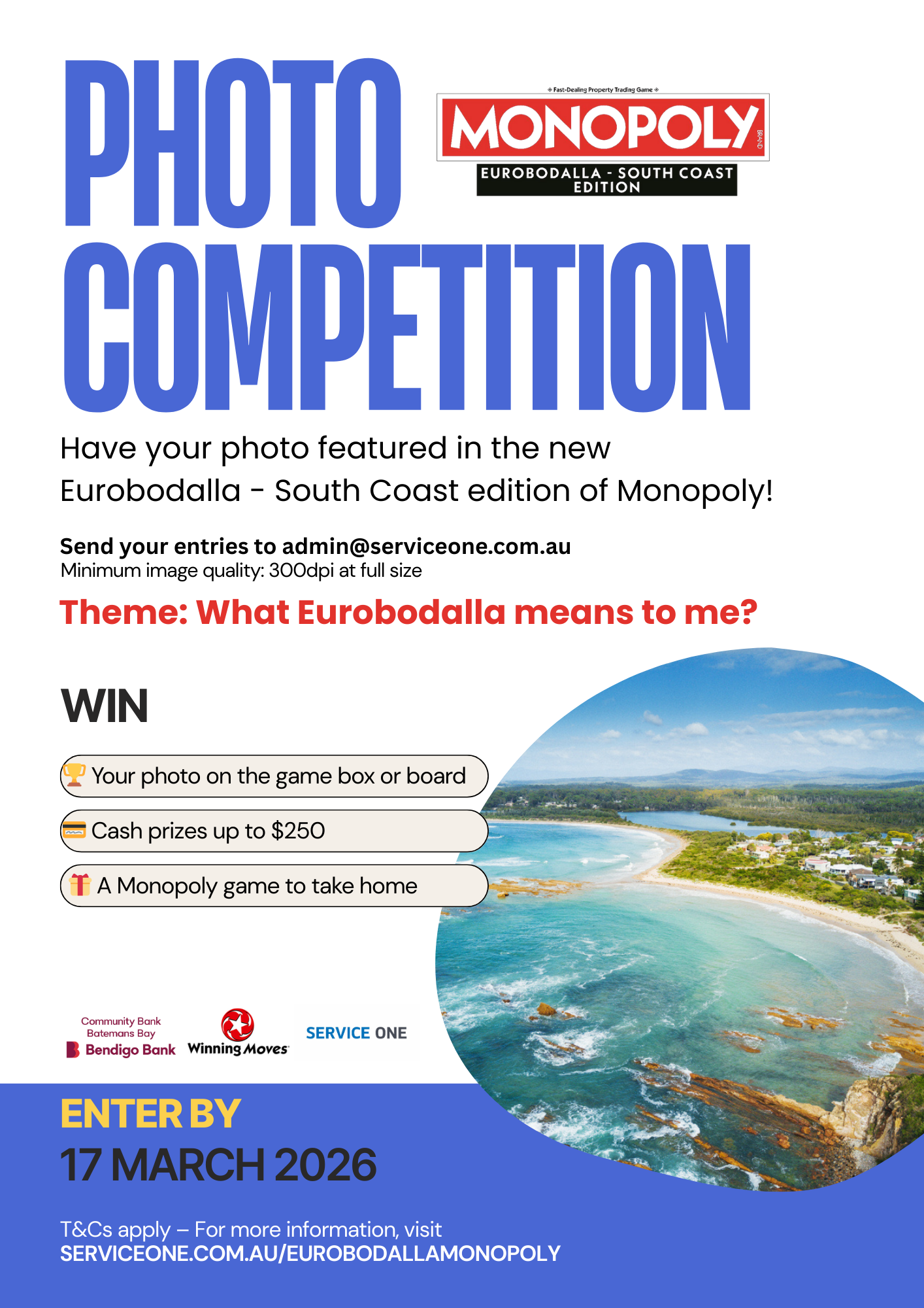 SERVICE ONE Mutual is inviting local residents to submit photos of the Eurobodalla region to feature in the new Monopoly game.